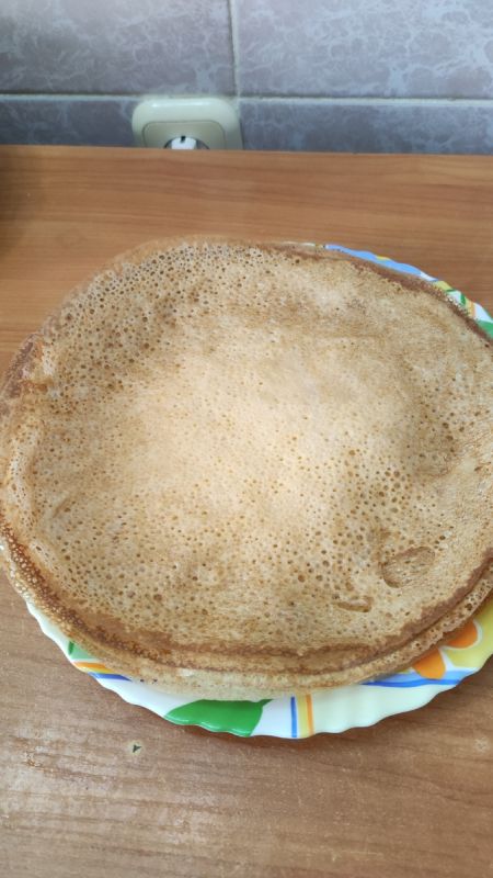 - После жарки первого блинчика оцените его толщину – при необходимости добавьте немного молока или кипятка для более жидкого теста.