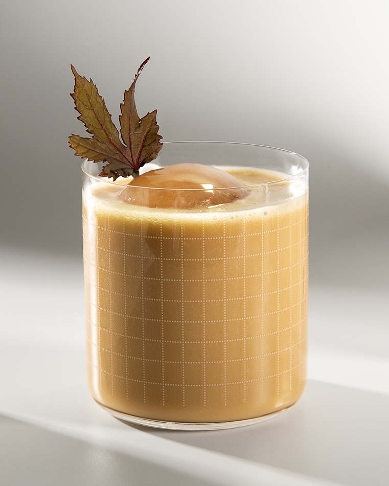 Выход напитка составляет 250 мл, а для подачи рекомендуем использовать посуду типа олд фешн. Для украшения подойдет микрозелень каркаде, а шарик льда идеально дополнит напиток.