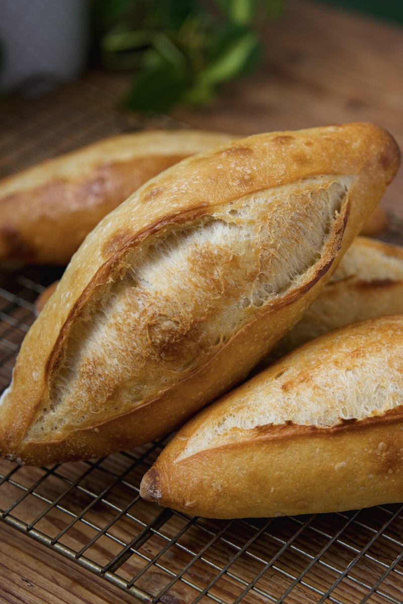 Эти домашние батоны покорят сердца своим золотистым хрустом и мягкой, легкой текстурой. Они просто идеально подходят для того, чтобы откусить их, мять в руках и наслаждаться с холодным молоком, создавая ощущение настоящего уюта.