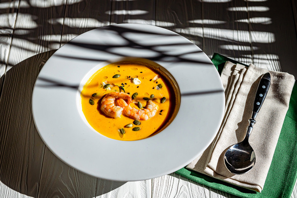 Пряный тыквенный суп с креветками от Павла Хорсова