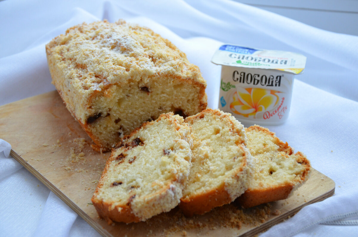 4. В подготовленную смазанную форму выкладываем тесто и равномерно покрываем его кокосовым штрейзелем. Выпекаем в предварительно разогретой до 180°C духовке в течение 40-45 минут, пока кекс не приобретет золотистую корочку.