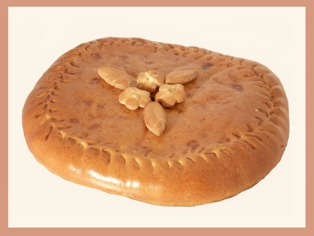 Раскатайте тесто в прямоугольник и выложите начинку на середину, аккуратно закрыв края. Дайте пирогу настояться, сделайте отверстия для выхода пара, а затем выпекайте в духовке при 220 градусах около 30 минут до золотистой корочки. Для украшения можно использовать тесто, вырезая из него фигурки.