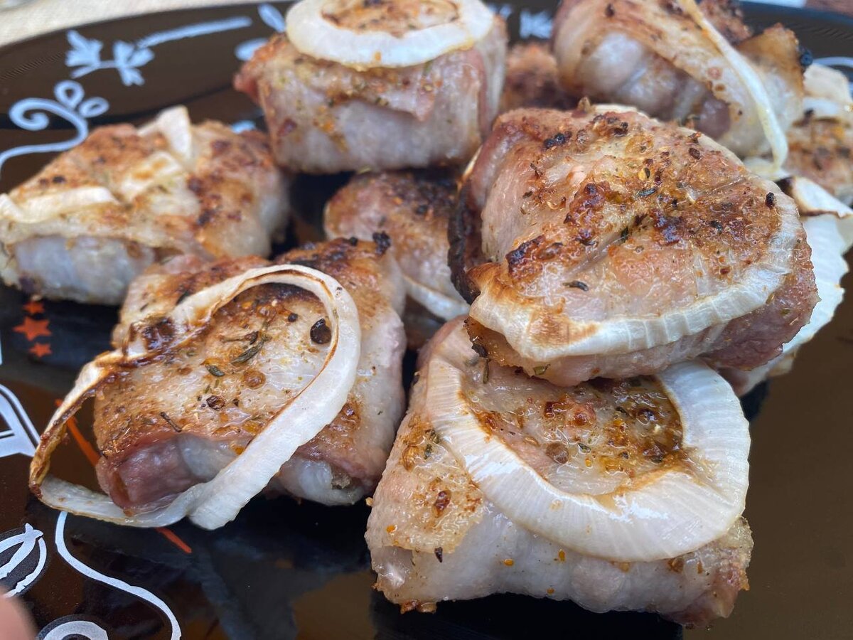 2. Обернуть каждый кусочек беконом для насыщенности и ароматности.