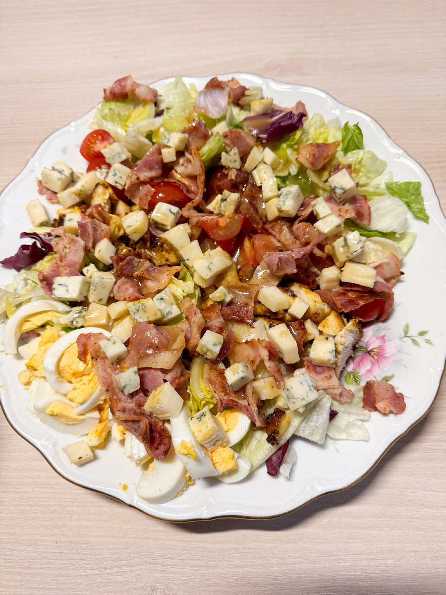 Салат Кобб — идеальное решение для легкого и вкусного обеда или ужина. Его насыщенный вкус и яркость делают его не только вкусным, но и привлекательным для глаз. Прежде чем подать, можно украсить свежими травами или дополнительно сбрызнуть оливковым маслом. Отличный вариант для семейного ужина или праздничного стола!