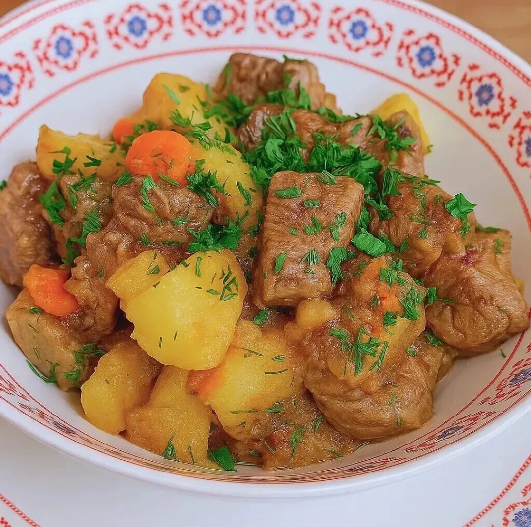 Идея для ужина: жаркое с ароматной свининой! Отличное мясное блюдо, которое понравится всей семье. Важно заметить, что мясо можно выбрать любое на ваш вкус.