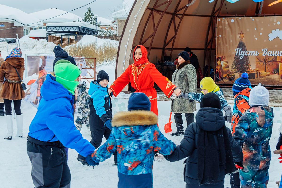 Для самых маленьких жителей организаторы подготовили театрализованное представление. Скоморохи приглашали детей в хороводы, а задорные частушки поднимали настроение даже лучше, чем горячий чай.