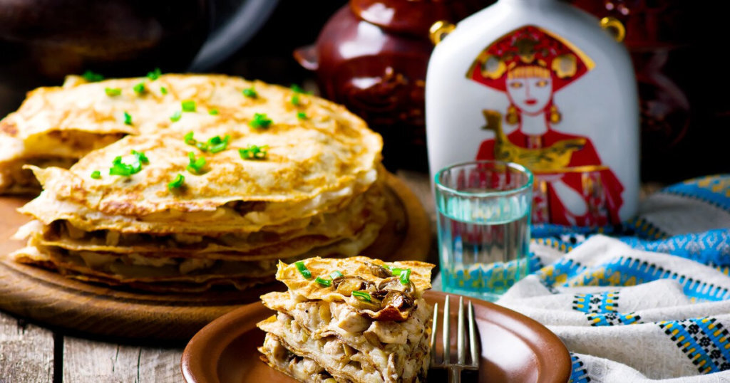 Начнем с блинов: просейте муку, смешайте её с солью и сахаром. Растопите масло в молоке и добавьте немного воды. Постепенно вливайте эту смесь в муку, замешивая тесто. Его можно быстро подготовить с помощью блендера. Выпекайте блины на предварительно смазанной маслом сковороде.