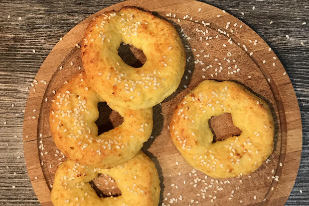 Сначала нужно размять творог с помощью вилки, затем добавить яйцо и тщательно перемешать до однородности.Следующим шагом натереть сыр на мелкой терке, добавить его к творожной массе и снова перемешать. Не забудьте посолить по вкусу!Теперь пришло время добавить кукурузную муку и замесить тесто. Если тесто выходит слишком жидким, можно добавить еще немного муки. Из полученной массы сформировать бублики.Подготовьте противень, застелив его бумагой для выпечки, и разогрейте духовку до 180 градусов.Выложите подготовленные бублики на противень, посыпьте кунжутом и выпекайте их в течение 30 минут.Уже через полчаса ваши бублики будут готовы! Подавайте их горячими, и наслаждайтесь!