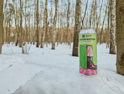 На рынке крафтового пива появилось новое интересное предложение от компании Big Village — дублированный хейзи ИПА под названием Intervention. Эта новинка уже доступна в московских боттлшопах благодаря наладившим поставки из Краснодара дистрибьюторам. Цена за новинку составляет 380 рублей за банку объемом 0,45 л.