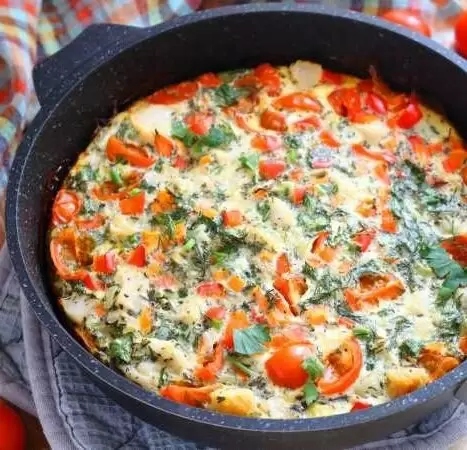 Полученной яичной заливкой заливается содержимое формы с рыбой и овощами. С помощью лопатки нужно аккуратно вмешать массу, чтобы яйцо во всех уголках запеканки.