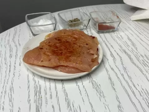 - Каждый кусочек посолите, поперчите, добавьте молотый чеснок и сладкую паприку для аромата.