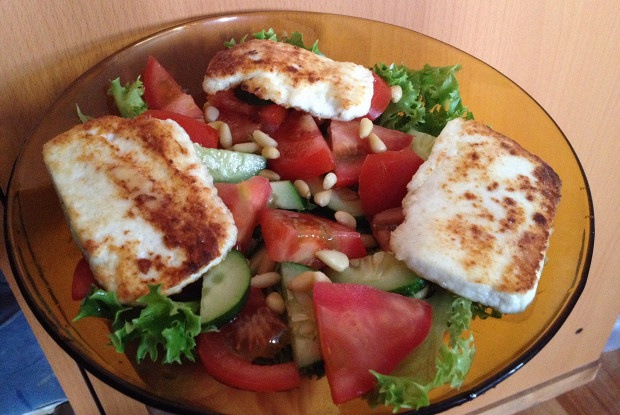 Этот салат с яркими вкусами и текстурами становится настоящим открытием на любом столе. Сочетание свежих овощей и хрустящего жареного сыра не оставит равнодушным никого!