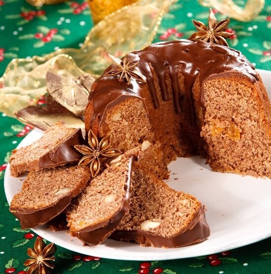 - Шоколадный кекс с миндалем и сухофруктами: Это классическое блюдо, пропитанное ароматом кориц, станет настоящим украшением праздничного стола. Главное — не забыть о глазури из горького шоколада, которая добавит изюминку.