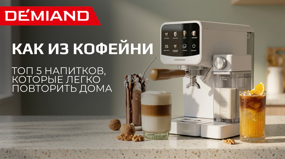 Эти рецепты помогут создать атмосферу настоящей кофейни прямо у себя на кухне с помощью кофеварки Demiand Rivo, что делает утренние ритуалы по-настоящему особенными.