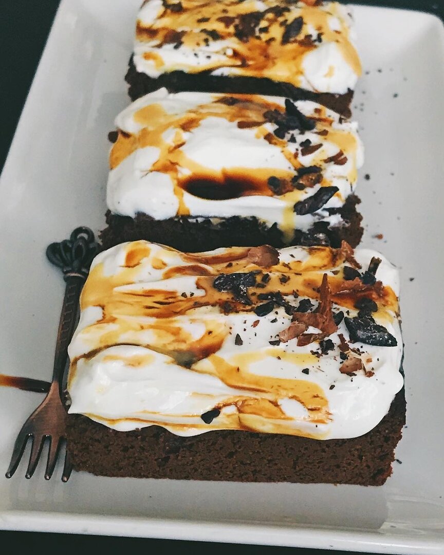 Для подачи идеально подойдут: мягкий творог, финиковый сироп и какао бобы.
