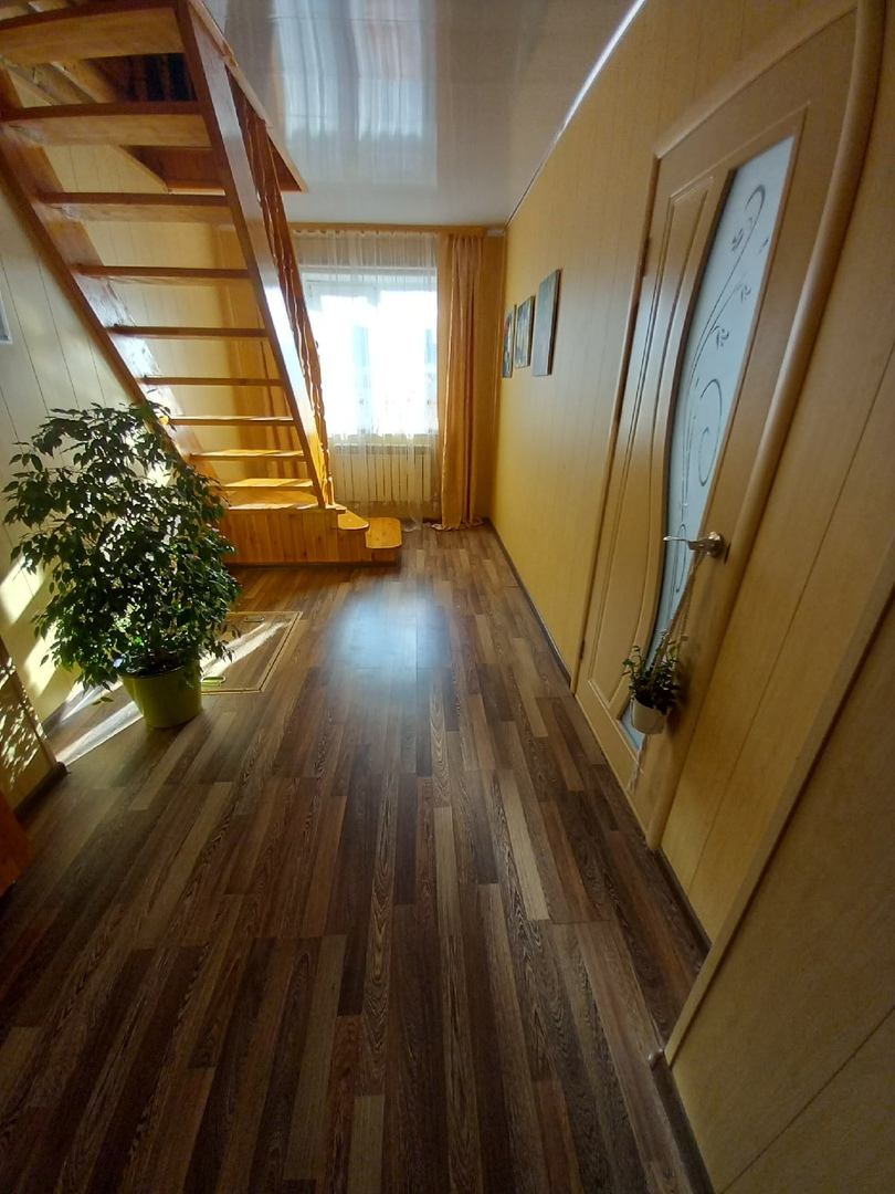 Для создания теплой атмосферы в коридоре был использован желтый цвет — цвет мебели, лестницы, а также занавески, которые предоставила сестра. Конечно, дизайн не дотягивает до парижских стандартов, но просторно и уютно. Как говорит бабушка, «чисто и светло — что еще нужно?»