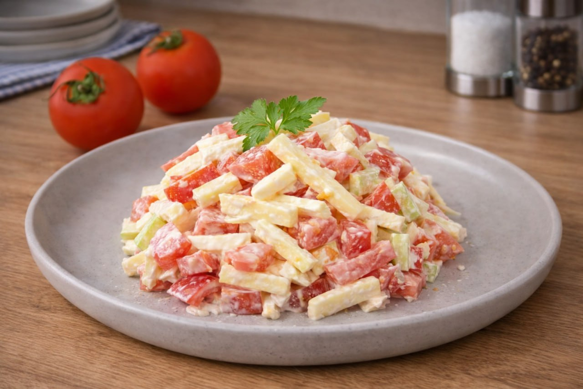 Салат на основе простых ингредиентов может стать настоящим кулинарным открытием. Этот яркий и легкий рецепт позволяет использовать то, что есть под рукой, создавая удивительные вкусовые симфонии.
