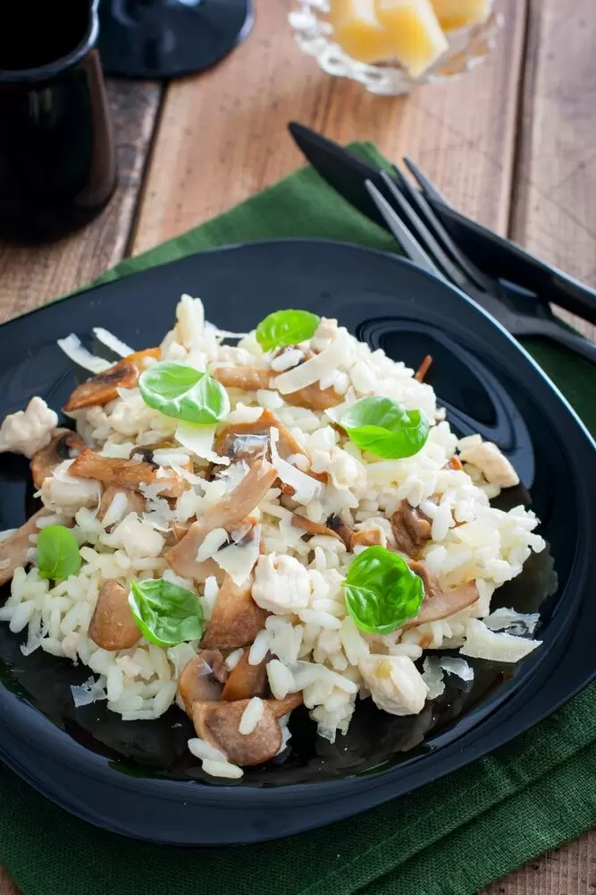Нежное ризотто с грибами и курицей: идеально для ужина
