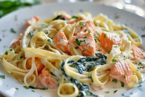 Паста с лососем и шпинатом в сливочном соусе становится настоящим кулинарным шедевром, красивым и ароматным. Попробуйте этот рецепт и насладитесь легкостью и гармонией вкусов ужина в кругу близких!