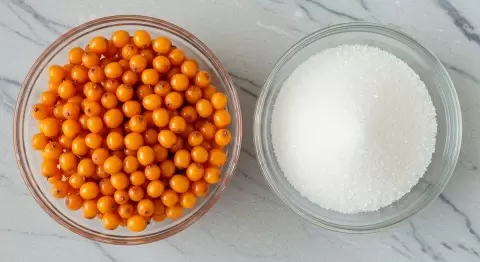 Для создания вкусного лакомства необходимы только два компонента: спелая облепиха и сахар. Но внимание! Подходите к выбору ягод с особой тщательностью: