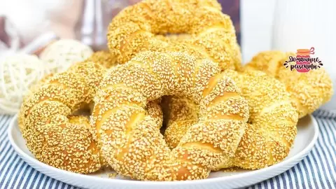 Симиты — это восхитительные турецкие бублики, которые пленяют своей хрустящей корочкой, обжаренным кунжутом и мягкой серединкой. Идеальный выбор для завтрака или перекуса!