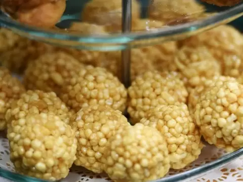 Кроме того, десерт должен быть залит медом или медово-сахарным сиропом с характерной неровной поверхностью, окрашенной в светло-желтые или золотистые тона.