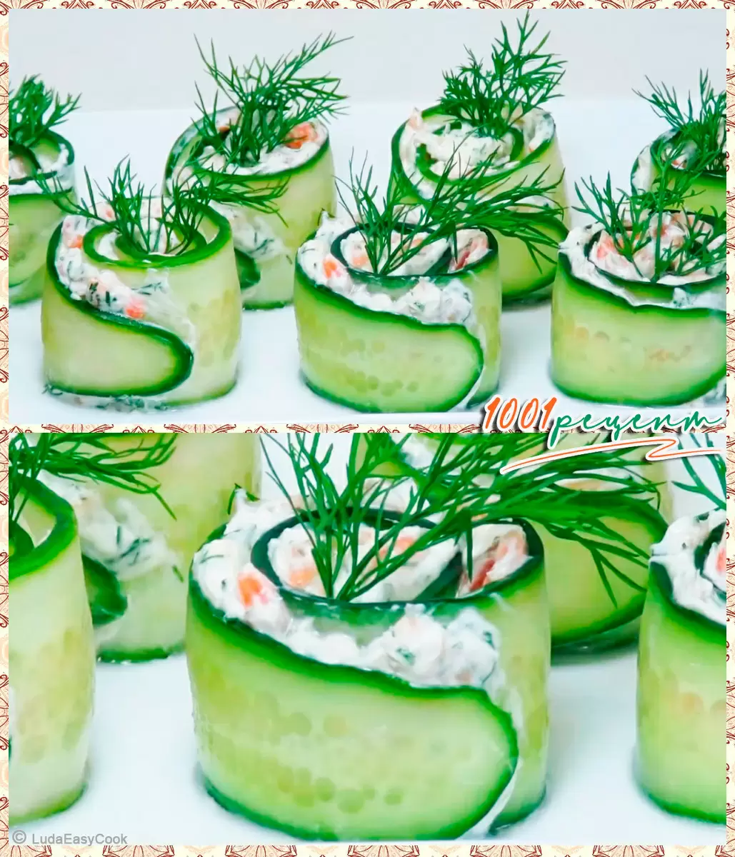 Рулетики из огурцов с сыром Фета