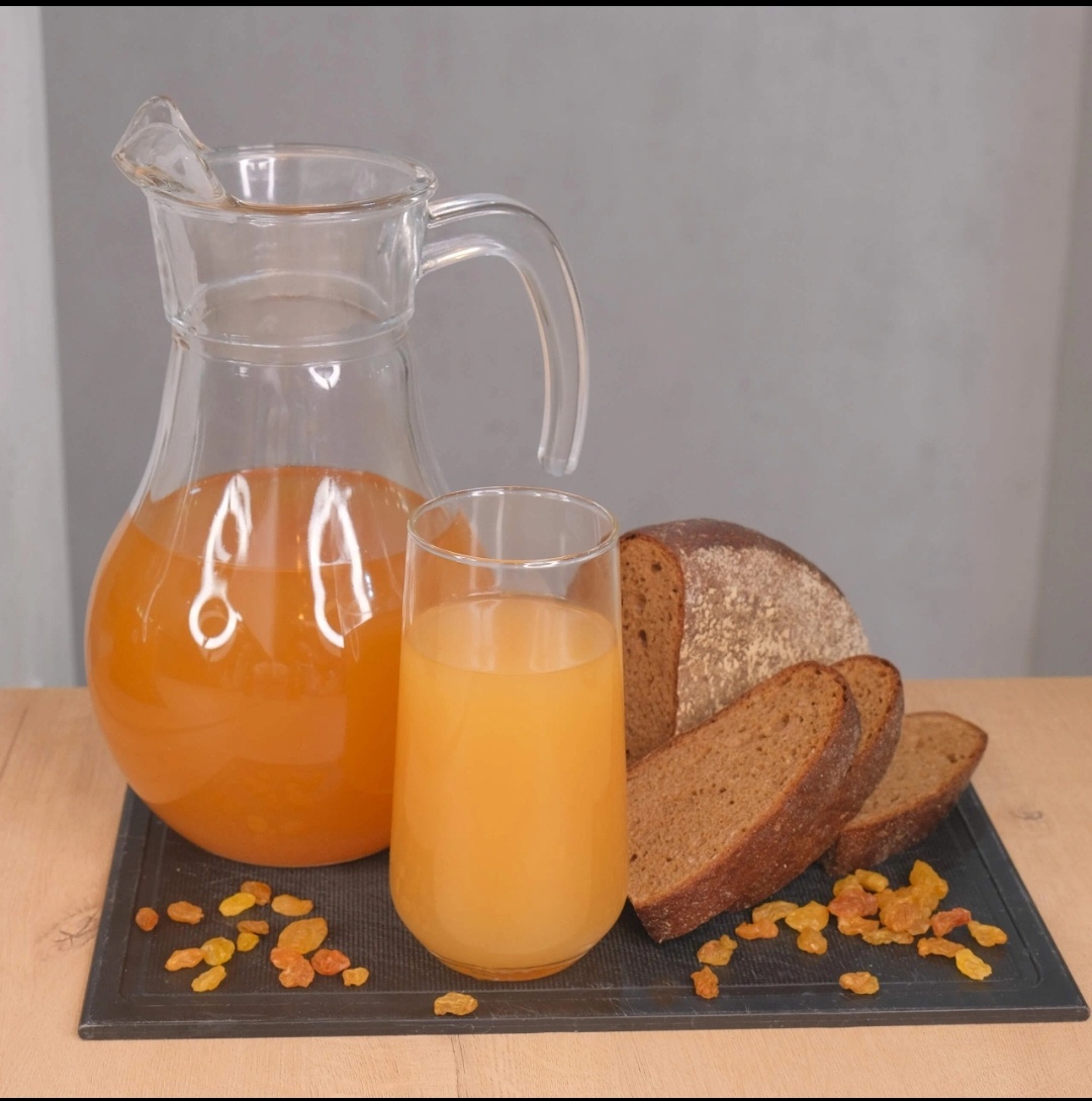- Добавляя горсть ржаных сухариков или сушеных фруктов (яблоки или груши), можно обогатить вкус. Для газированного эффекта разлейте квас по бутылкам и оставьте в холодильнике на сутки.